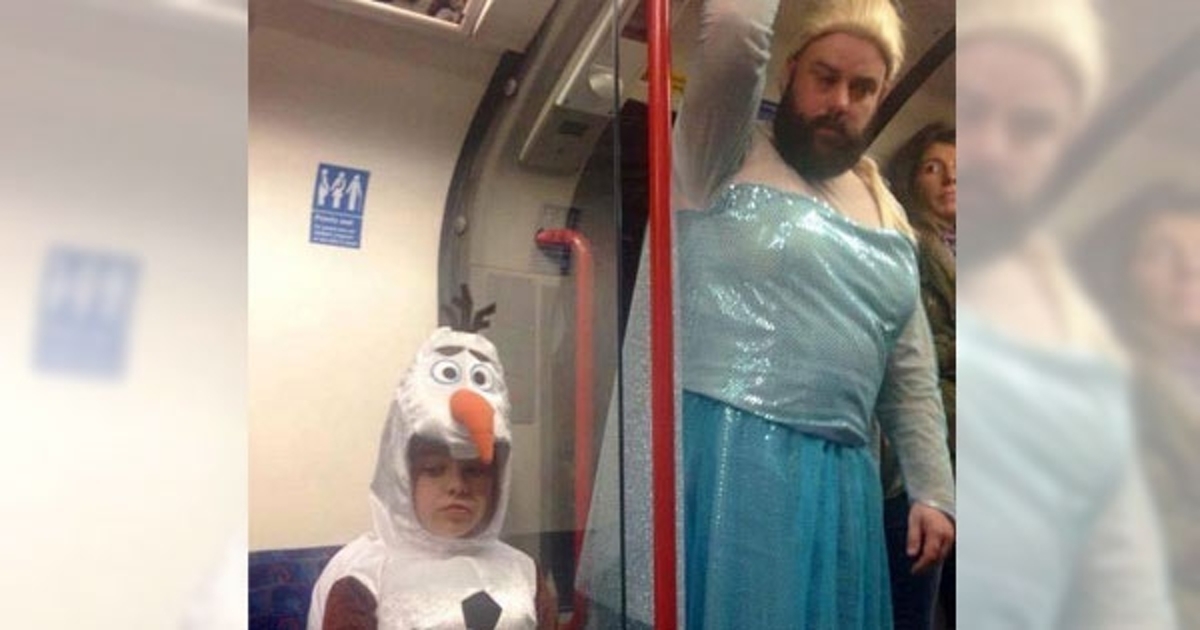 เมื่อวันที่ 22 มีนาคม 2558 ภาพชายร่างใหญ่เคราดำดกเฟิ้มในชุดเจ้าหญิงเอลซ่าเต็มยศแสนจะฟรุ้งฟริ้ง ทั้งชุดสีฟ้าเลื่อมพราวยาวระพื้น แถมด้วยวิกผมเปียสีบลอนด์บนศีรษะ ยืนหน้ามึนโหนรถไฟใต้ดินขบวนหนึ่งในลอนดอน ถูกโพสต์ลงในเว็บบอร์ด Reddit และถูกแชร์ออกไปอย่างรวดเร็ว ก็ภาพนี้ทั้งชวนฮาและน่ารักใช่ย่อย เมื่อเอลซ่าหน้าโหดคนนี้ที่จริงคือป๊ะป๋าผู้แสนดี ทุ่มสุดตัวแปลงกายเป็นเจ้าหญิงเอลซ่า พาลูกสาวในชุดสโนว์แมนโอลาฟ ไปร่วมงาน Sing Along Frozen ที่เลสเตอร์สแควร์ ต่างหากเล่า