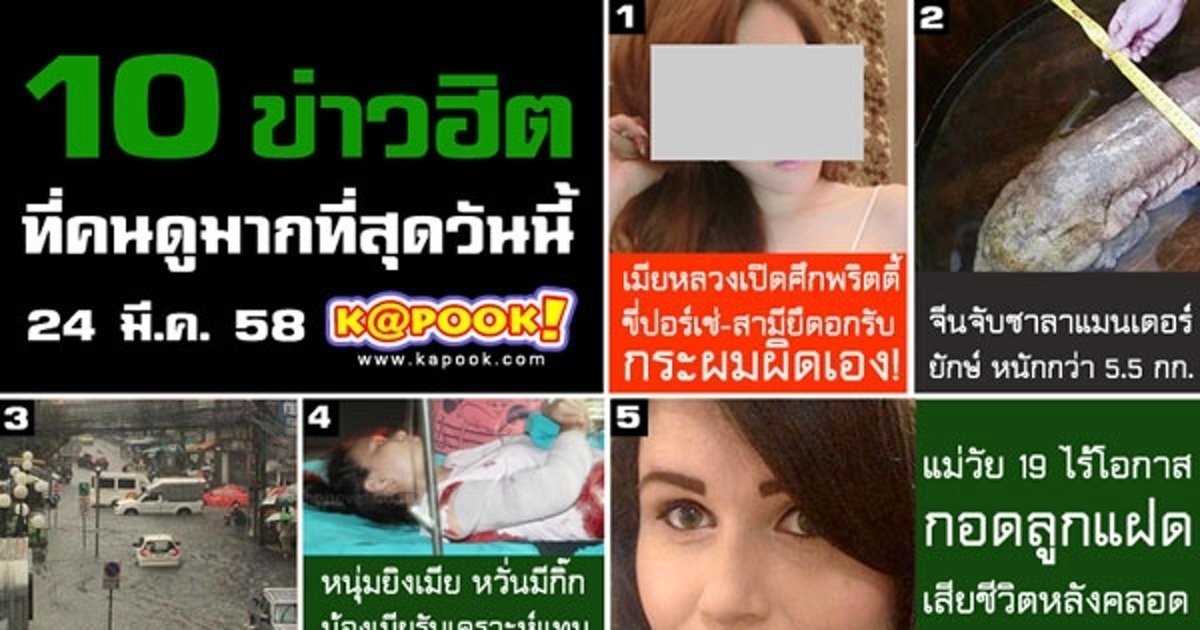 ข่าวฮิตประจำวันนี้ เป็นเรื่องของ เมียหลวงเปิดศึกพริตตี้ขี่ปอร์เช่, จีนจับซาลาแมนเดอร์ยักษ์ และกรุงเทพฯ ฝนตกหนักจนน้ำท่วมขัง