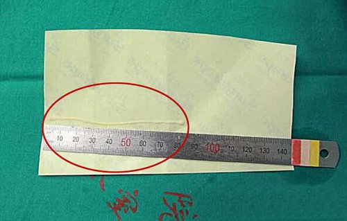 เมื่อวันที่ 24 มีนาคม 2558 เว็บไซต์เดลี่เมลของอังกฤษ รายงานว่า แพทย์จีนผ่าตัดนำพยาธิยาว 8 เซนติเมตรออกมาจากสมองผู้ป่วยสาววัย 29 หลังเธอปวดหัวมานานถึง 6 ปี เชื่อพยาธิเข้าไปในร่างกายจนขึ้นไปไชสมองของเธอได้ เพราะเธอทานกบเป็น ๆ ในสมัยเด็ก