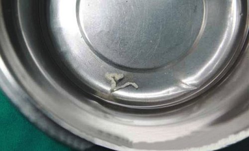 เมื่อพบว่าผู้ป่วยมีอาการหนัก แพทย์จึงตัดสินใจที่จะผ่าตัดสมองของเธอ แม้ว่าจะมีความเสี่ยงไม่น้อยเลยก็ตาม และในที่สุดก็พบว่าสิ่งแปลกปลอมที่อยู่ภายในสมองของเธอนั้น คือพยาธิความยาว 8 เซนติเมตรเศษ ๆ ตัวการที่ทำให้เธอมีอาการปวดหัวมาหลายปี