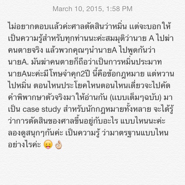 เป็นเรื่องราวที่ยอมความกันไม่ได้ ถึงกับต้องฟ้องร้องให้กฎหมายเข้ามาช่วย กับกรณีของ "ไฮโซ น้ำหวาน วรพรรณ" และ "หนิง ปณิตา" ที่โดนกล่าวหาว่าทำร้ายร่างกายไฮโซน้ำหวาน ที่ร้านอาหารย่านทองหล่อจนได้รับบาดเจ็บสาหัส และศาลเพิ่งตัดสินความไปให้อีกฝ่ายชนะคดี งานนี้เลยมีข่าวเม้าท์กันว่า ไฮโซน้ำหวาน โพสต์ข้อความเหมือนเหน็บแนมที่อีกฝ่ายชนะ ซึ่งล่าสุด (25 มีนาคม 2558) เจ้าตัวก็ชี้แจงว่า...