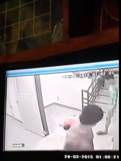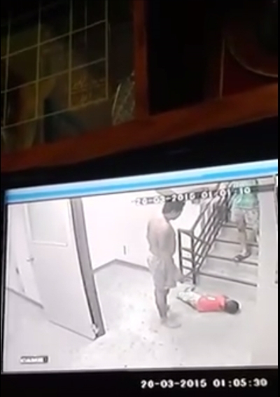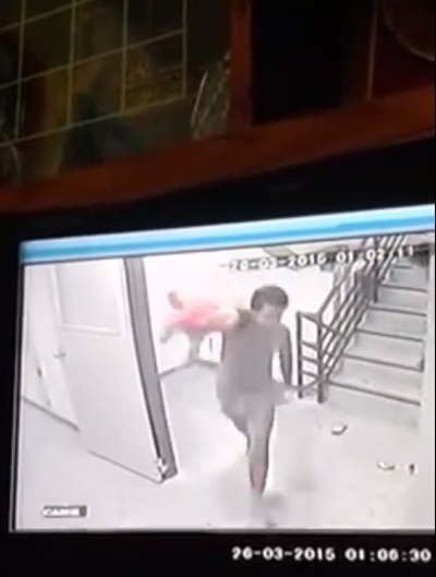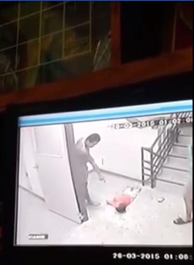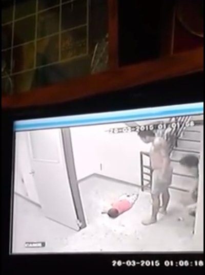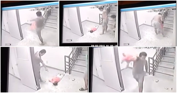 เมื่อมีคนเดินลงบันไดมาและพยายามช่วยห้าม พ่อเลี้ยงก็ด่ากลับ ก่อนจะกระชากเด็กขึ้นมาตบศีรษะต่อหน้าคนที่ผ่านมาอีก 3 ครั้ง