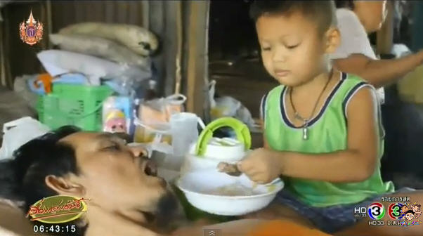 เด็กชายวัย 4 ขวบสุดยอดกตัญญูคอยดูแลพ่อขาพิการทั้งสองข้างแทนแม่ที่ออกไปรับจ้างทำงาน มีรายได้เพียงวันละ 100-200 บาท ชาวบ้านวอนหน่วยงานที่เกี่ยวข้องเข้าไปช่วยเหลือ