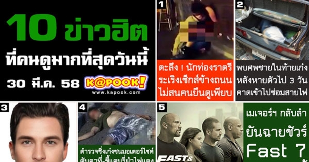 ข่าวฮิตประจำวันนี้ เป็นเรื่องคลิปนักท่องเที่ยวระเริงรักบนถนนที่เวียดนาม ไม่สนคนดูเพียบ รองลงมาเป็นเรื่องโฉมหน้าที่หล่อสวยที่สุดในโลก เป็นแบบนี้นี่เอง