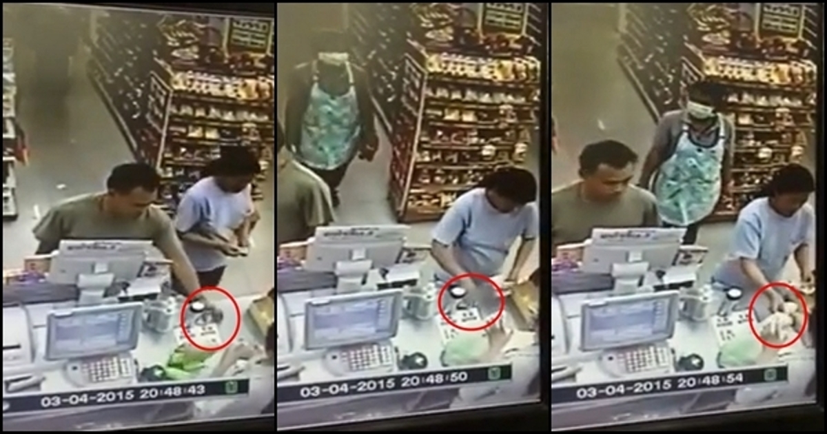 วิดีโอดังกล่าวเป็นภาพที่ได้มาจากกล้องวงจรปิดเผยให้เห็นลูกค้าผู้ชายรายหนึ่งยืนอยู่หน้าเคาน์เตอร์เพื่อจะจ่ายเงิน แต่ยังไม่ถึงคิวเลยวางเงินไว้แล้วหันไปมองอย่างอื่น ระหว่างนั้นมีผู้หญิงวัยกลางคนเดินเข้ามาที่เคาน์เตอร์เพื่อจะจ่ายเงิน แต่เมื่อเห็นเงินวางอยู่ จึงทำเนียนคว้าเงินที่วางอยู่ไปนับรวมกับเงินของตัวเองเสียเลย แล้วก็จ่ายเงินไปแบบไม่รู้ไม่ชี้ แม้แต่เจ้าของเงินและพนักงานหน้าเคาน์เตอร์ก็ไม่เห็น เพราะรีบคิดเงินให้ลูกค้า