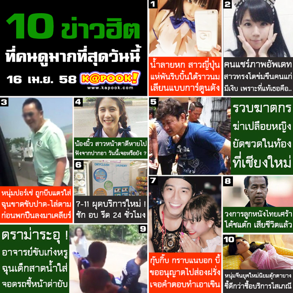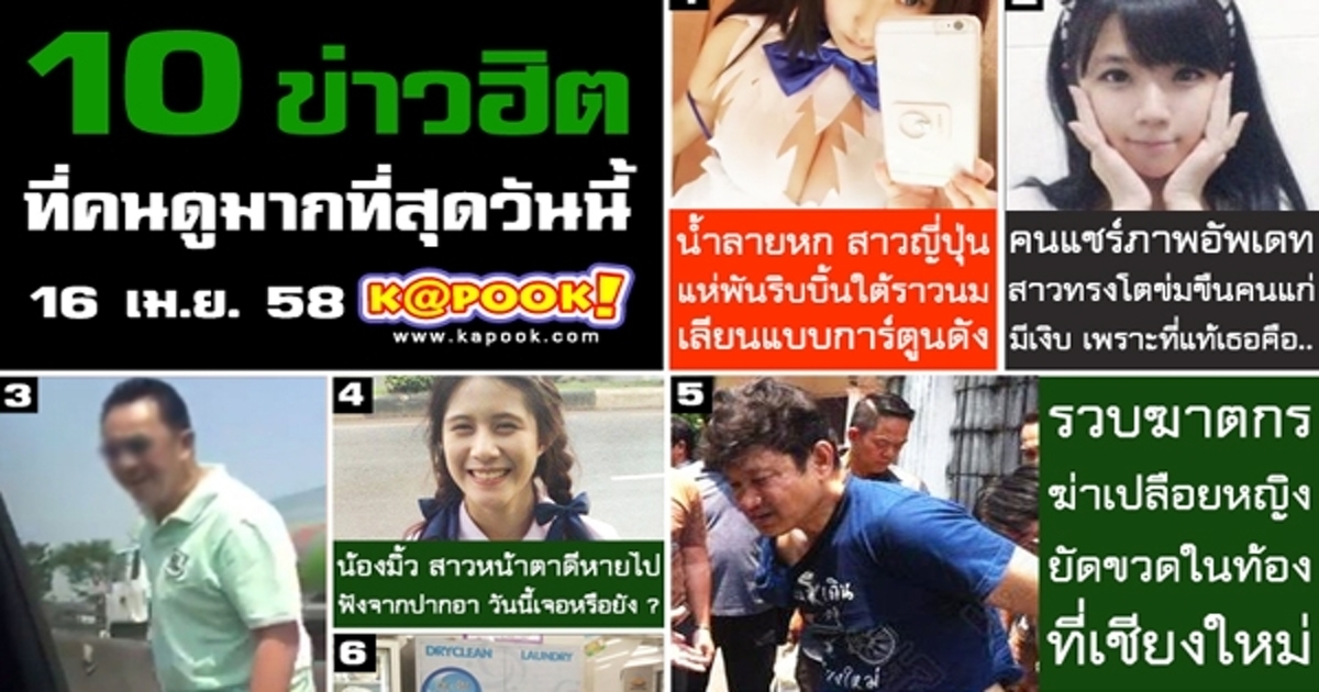 ข่าวฮิตประจำวันที่ 16 เมษายน 2558 กับข่าวน้ำลายหก สาวญี่ปุ่นแห่พันริบบิ้นใต้ราวนม เลียนแบบการ์ตูนดัง หรือเรื่อง เงิบเลย ! ภาพอัพเดทเด็กสาวทรงโตข่มขืนคนแก่ ที่แท้เธอคือ...