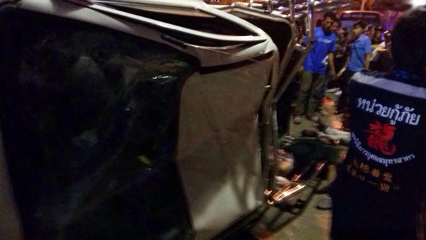 กระบะขนคนงานพม่า พุ่งชนแบริเออร์กลางถนน ดับ 8 ราย เจ็บเพียบ คนขับโดนตั้งข้อหาทำทรัพย์สินราชการเสียหาย