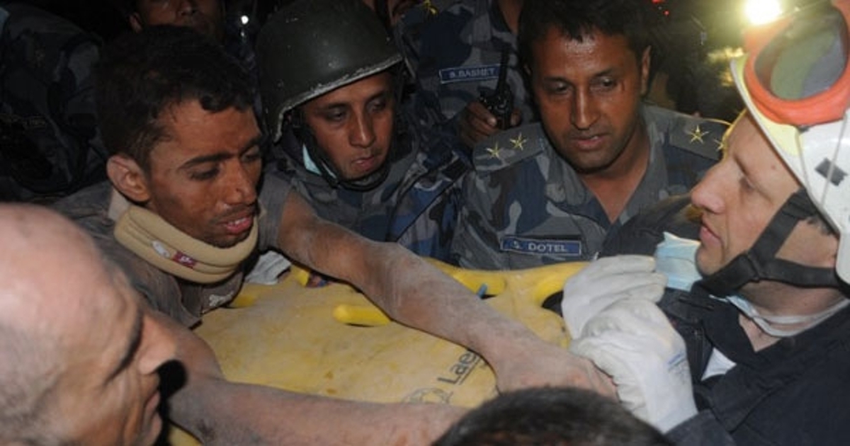 เมื่อวันที่ 29 เมษายน 2558 เว็บไซต์สกายนิวส์ รายงานว่า หนุ่มผู้รอดชีวิตจากเหตุแผ่นดินไหว ได้รับการช่วยเหลือจากทีมกู้ภัยฝรั่งเศส หลังจากติดอยู่ใต้ซากปรักหักพังรายล้อมด้วยศพนานกว่า 3 วัน เผยต้องดื่มน้ำปัสสาวะตัวเองประทังชีวิตระหว่างรอคอยด้วยความหวังว่าจะมีใครสักคนเข้ามาพบเขา