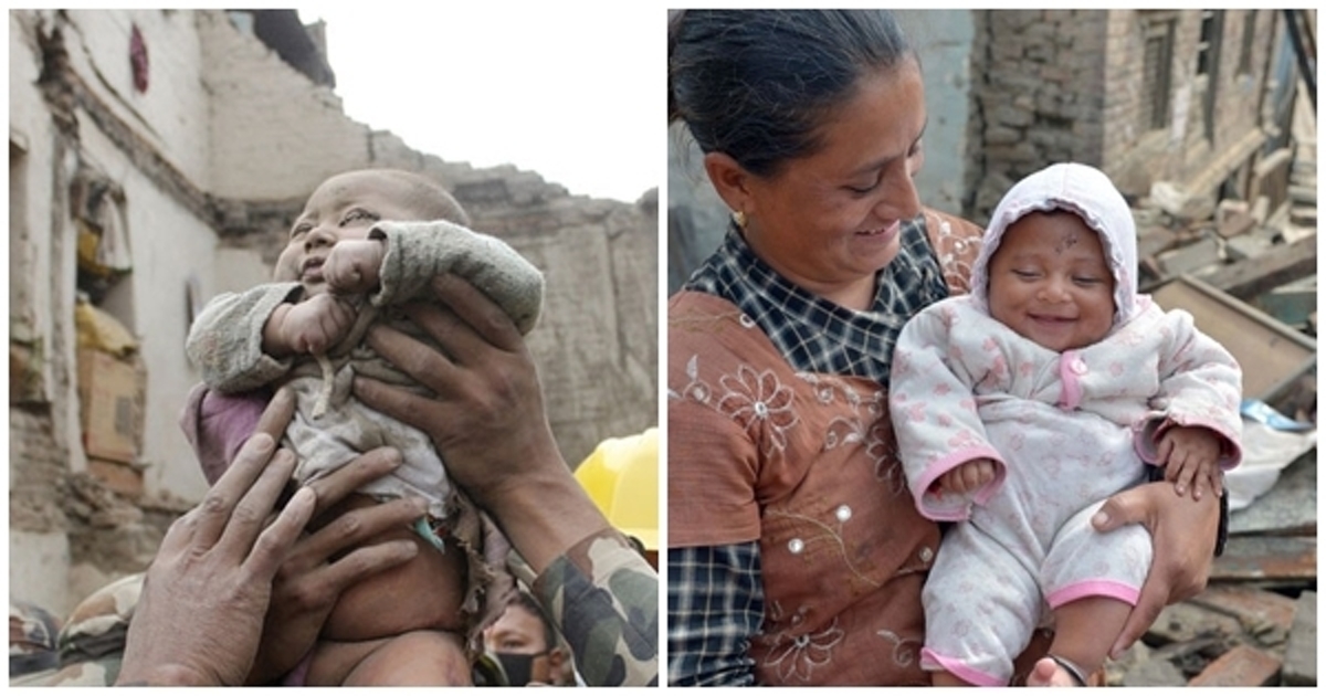 เมื่อวันที่ 30 เมษายน 2558 เว็บไซต์มิเรอร์ของอังกฤษ อัพเดทเรื่องราวของเด็กวัย 4 เดือน ที่ได้รับการช่วยเหลือออกมาจากซากปรักหักพังจากเหตุแผ่นดินไหวเนปาลในสภาพเนื้อตัวมอมแมม และภาพการช่วยเหลือนั้นได้กลายเป็นภาพที่ถูกแชร์ไปทั่วโลกมากที่สุดเมื่อช่วงสัปดาห์ที่ผ่านมา โดยระบุว่าตอนนี้หนูน้อยได้กลับคืนสู่อ้อมอกแม่แล้ว และแม่เด็กเองก็ได้เปิดเผยว่ามันเหมือนปาฏิหาริย์ เธอไม่คิดว่าลูกชายจะมีชีวิตรอดจากเหตุแผ่นดินไหวครั้งนี้