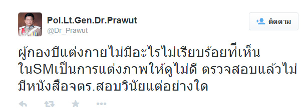 "ผู้กองบีแต่งกายไม่มีอะไรไม่เรียบร้อยที่เห็นใน SM เป็นการแต่งภาพให้ดูไม่ดี ตรวจสอบแล้วไม่มีหนังสือจตร.สอบวินัยแต่อย่างใด"