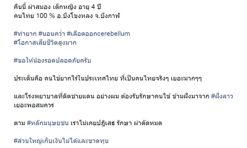 "คืนนี้ ผ่าสมอง เด็กหญิง อายุ 4 ปี คนไทย 100 % อ.บึงโขงหลง จ.บึงกาฬ #ท่ายาก #นอนคว่ำ #เลือดออกcerebellum #โอกาสเสียชีวิตสูงมาก # ขอให้น้องรอดปลอดภัยครับ