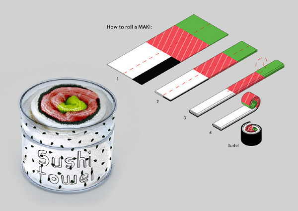 ไอเดียทำของใช้รูปอาหารต่าง ๆ ดูเหมือนจะกำลังกลายเป็นที่นิยมในสมัยนี้ ไม่ว่าจะเป็นการทำหมอนเป็นรูปอาหารต่าง ๆ เช่น ปลา ไก่ทอด หรือแม้แต่ทำกระเป๋าดินสอพิมพ์ลายอาหารที่เห็นแล้วก็แอบน้ำลายสอไม่น้อย เพราะช่างคล้ายกับของจริงเสียเหลือเกิน วันนี้เราก็มีไอเดียเด็ด ๆ จากเว็บไซต์ arch2o.com ที่กิ๊บเก๋ไม่แพ้กันมาฝากกับผ้าขนหนูลายซูชิ ซึ่งไม่ใช่แค่พิมพ์ลายเท่านั้น แต่ต้องอาศัยวิธีการพับที่ก็ไม่ได้ยากเกินความสามารถเลยล่ะ อยากรู้ว่าเป็นอย่างไร แล้วจะดีงามขนาดไหนลองไปดูกันเลย