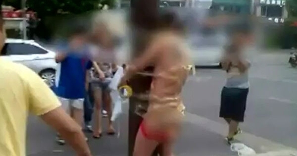 เจ้าบ่าวจีนถูกเพื่อนจับแก้ผ้ามัดไว้กับเสา ก่อนรุมปาเค้กและไข่ใส่กลางถนน เล่นกันแบบนี้เล่นหรือเนี่ย