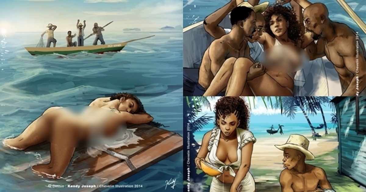 นี่เป็นผลงานของ โจเซฟ เคนดี้ แห่งสตูดิโอ Chevelin Illustration จากประเทศไฮติ ผลงานการ์ตูนจากสตูดิโอแห่งนี้โดดเด่นที่การทำนำเรื่องราวท้องถิ่นมาบอกเล่าได้อย่างแฝงแง่คิด ลองไปติดตามกันดูได้ที่เฟซบุ๊ก Chevelin Illustration ค่ะ