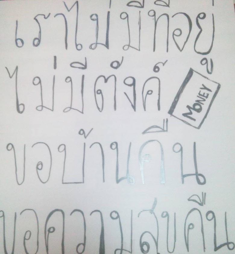 พวกเรารู้สึกขอบคุณกำลังใจ ความช่วยเหลือ และความใจดีของชาวไทย เราได้รับแรงสนับสนุนจากคนรุ่นใหม่ในการหยุดการคดโกง แม้ว่ารัฐบาลและสถานทูตเราจะไม่สนใจเรา แต่ว่าประชาชนคนไทยหลายคน เข้าใจและพยายามช่วยเหลือเรา มากกว่าที่เราคาดคิดซะอีก ขอบคุณ