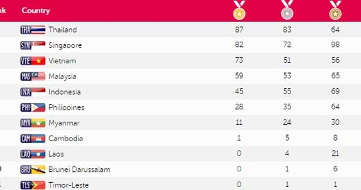 เมื่อวันที่ 14 มิถุนายน 2558 การแข่งขันกีฬาซีเกมส์ ที่ประเทศสิงคโปร์ เดินทางมาถึงโค้งสุดท้ายแล้ว ซึ่งสรุปเหรียญซีเกมส์ 2015 ในวันนี้ ไทยยังคงนำเป็นเจ้าเหรียญทองที่ 87 เหรียญทอง ขณะที่เจ้าภาพสิงคโปร์ รั้งอันดับ 2 อยู่ที่ 82 เหรียญทอง