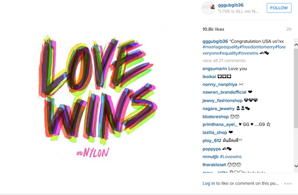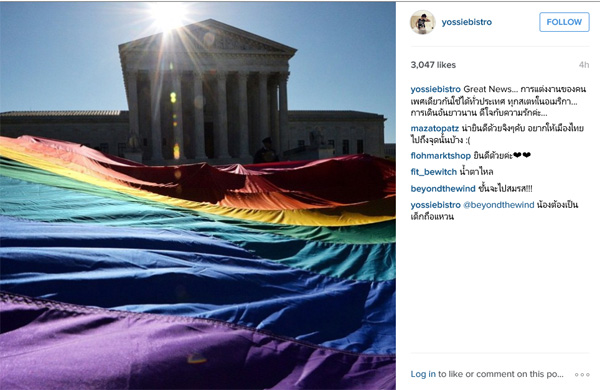 รักชนะทุกอย่าง ศาลสหรัฐไฟเขียวแต่งงานเพศเดียวกันทั่วประเทศ ด้านโอบามา-ซัคเกอร์เบิร์ก ร่วมยินดีกับกฎหมายนี้ด้วย ส่วนคนบันเทิงไทยก็ยินดีเช่นกัน