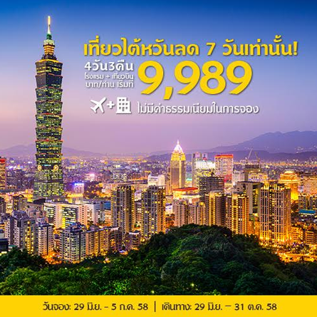 เอ็ก ซ์พีเดีย ไทยแลนด์ บริษัทท่องเที่ยวออนไลน์ชั้นนำของโลก จัดโปรโมชั่นเที่ยวไต้หวันลด 7 วันเท่านั้น! เส้นทางยอดฮิตกับแพ็กเกจท่องเที่ยว 4 วัน 3 คืน โรงแรม+เที่ยวบิน+ภาษี เริ่มต้นที่ 9,989บาท/ท่าน เริ่มจองได้ที่ Expedia.co.th ตั้งแต่วันนี้ - 5 ก.ค.58 เดินทางได้ตั้งแต่วันนี้ - 31ต.ค.58