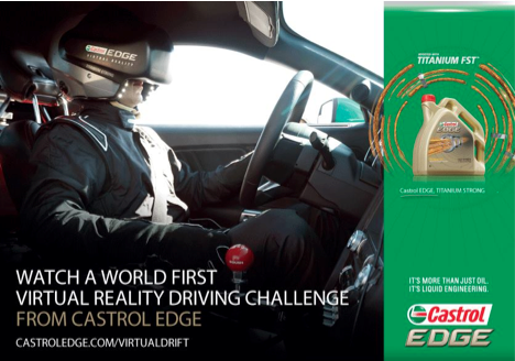 ครั้งแรกของโลก!! กับภารกิจสุดท้าทายจากCastrol EDGE " Titanium Strong Virtual Drift " เมื่อนักแข่งและยานยนต์ ผสานเป็นหนึ่ง เผชิญความท้าทายเหนือขีดจำกัด กับการขับขี่บนสนามแข่งจริง แต่ต้องมองผ่านแว่นออกแบบพิเศษOculus ในโลกเสมือนจริง และ ฝ่าฟันอุปสรรคเหนือความคาดหมายที่ไม่มีใครเคยทดสอบมาก่อนในโลก