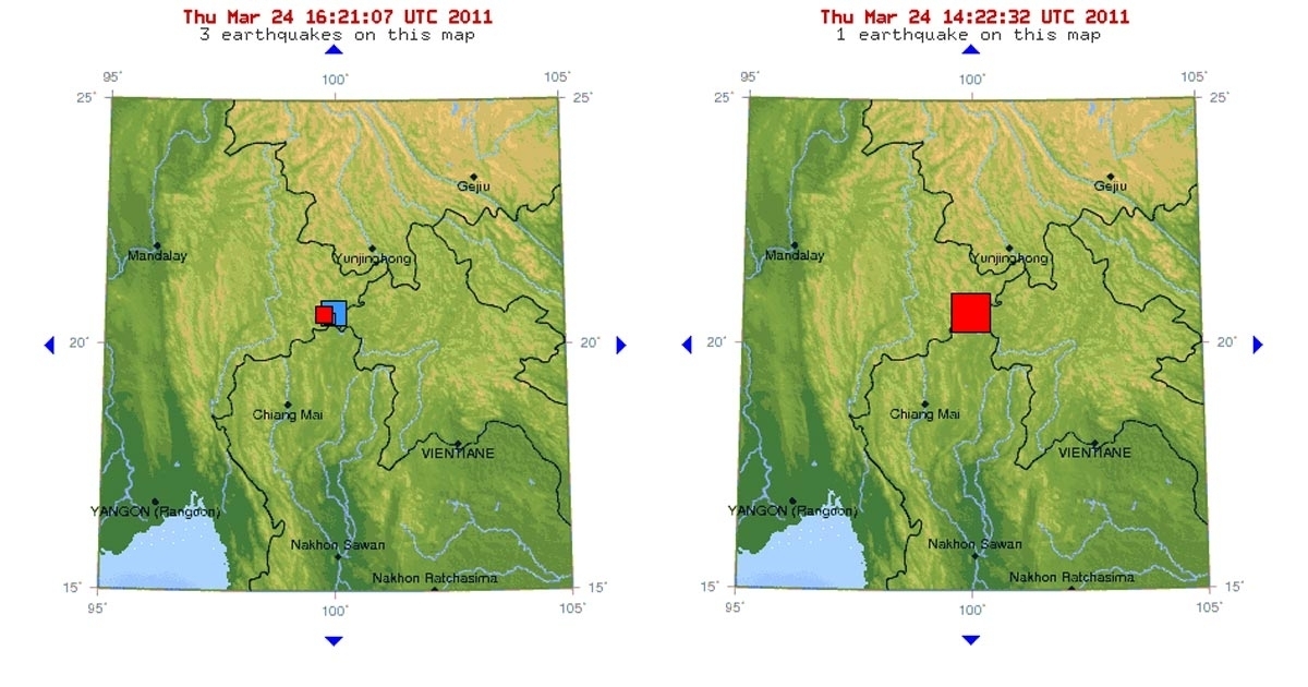 จาก เหตุการณ์แผ่นดินไหวความรุนแรง 6.8 ริกเตอร์ ที่มีจุดศูนย์กลางอยู่บริเวณชายแดนประเทศพม่าซึ่งส่งผลให้เกิดแรงสั่น สะเทือนมาถึงบริเวณภาคเหนือเรื่อยลงมาจนถึงกรุงเทพฯ เมื่อเวลา 20.55 น. ของวันที่ 24 มีนาคม 2554 ล่าสุด สำนักข่าวเอเอฟพี (AFP) รายงานว่า ยอดผู้เสียชีวิตจากเหตุการณ์ครั้งนี้ เพิ่มขึ้นเป็นจำนวนไม่ต่ำกว่า 25 คนแล้ว จากเมื่อคืนที่มียอดผู้เสียชีวิตเพียง 10 คน