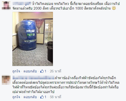 งานนี้จึงทำให้ชาวเน็ตเหลืออด แห่กันเข้ามาระบายความไม่พอใจหลังต้องเผชิญกับสถานการณ์น้ำหยุดไหลเป็นช่วง ๆ ตลอดในระยะเวลาที่ผ่านมา ดังที่ปรากฏในภาพด้านล่างนี้