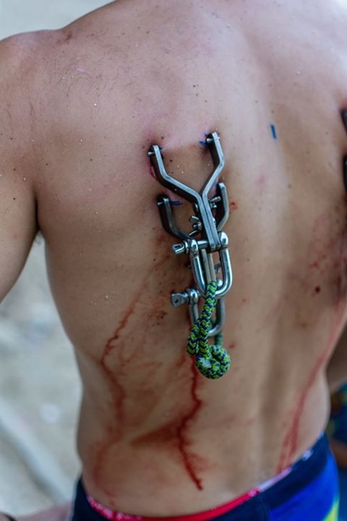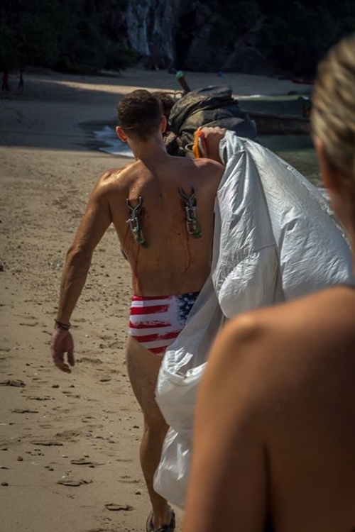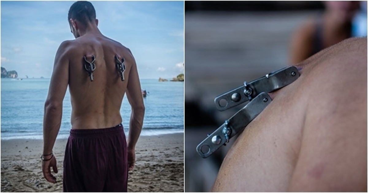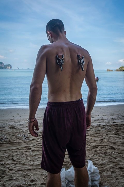 ทั้งนี้ นายจอช มิราแมนท์ ได้ใช้ตะขอของร่มชูชีพ เกี่ยวเข้าไปในเนื้อตัวเอง ซึ่งเขาเผยว่า ก่อนหน้านี้เขาเองไม่เคยเจาะตรงส่วนใด ๆ ในร่างกายมาก่อน และการเจาะตะขอเข้าไปบนหลังของตัวเองนั้น ก็ถือเป็นประสบการณ์ที่เจ็บปวดที่สุดเท่าที่เขาเคยมีมา