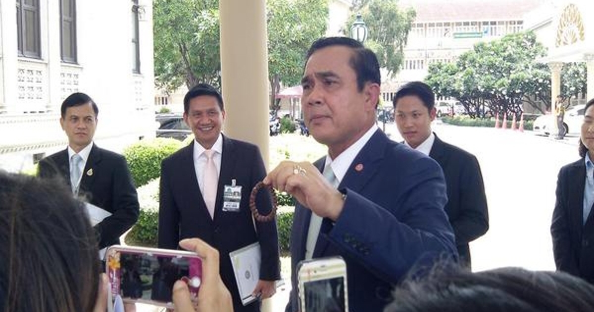 พล.อ. ประยุทธ์ จันทร์โอชา อวดกำไลสื่อมวลชน เผยเป็นกำไลที่ทำขึ้นจากไม้มงคลจากประเทศอินเดีย เรียกว่า น้ำตาพระศิวะ บอกใส่แล้วอุ่นใจ