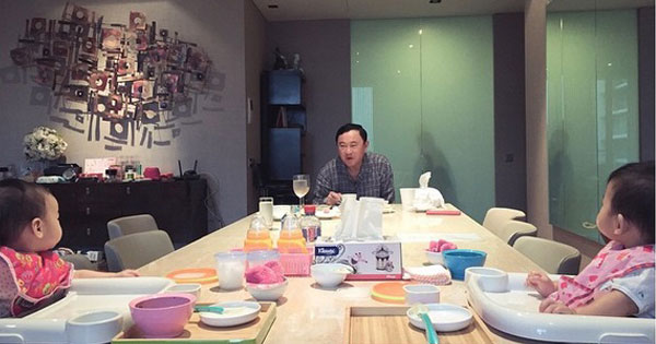 เอม พินทองทา โพสต์ภาพผ่านอินสตาแกรม ขณะ ทักษิณ ชินวัตร กำลังนั่งหัวโต๊ะ ร่วมรับประทานอาหารกับหลานสาวฝาแฝด พร้อมข้อความน่ารัก ๆ "Twins breakfast view"