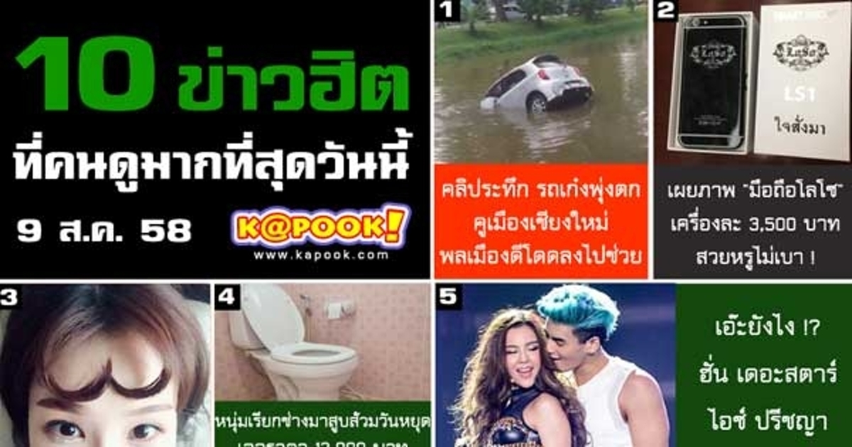 ข่าวฮิตในวันนี้ เป็นเรื่องเปิดคลิประทึก รถเก๋งตกคูเมืองเชียงใหม่ พลเมืองดีโดดเข้าไปช่วย รองลงมาชาวเน็ตแห่แชร์ภาพไก่ จนกว่าจะออกรายการสรยุทธ