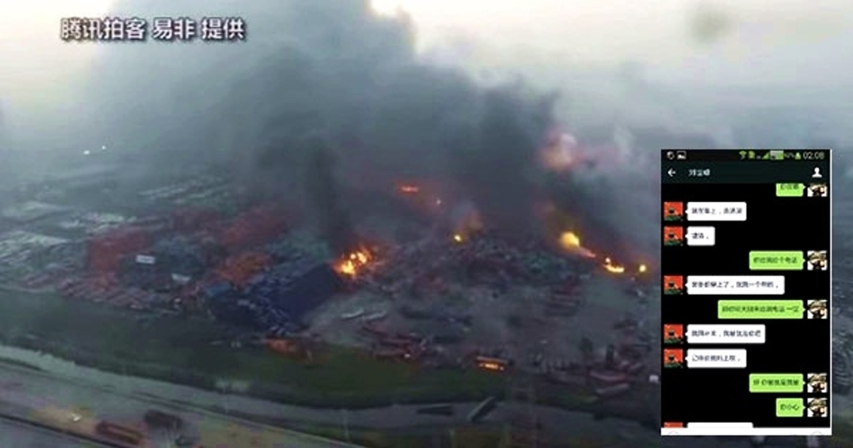 ขณะที่เมื่อช่วงเวลาประมาณ 11.50 น. วันนี้ (13 สิงหาคม) เว็บไซต์ hongkongfp.com ได้มีรายงานความคืบหน้าจากเหตุดังกล่าว ระบุว่า ขณะนี้สื่อโซเชียลมีเดียของจีนได้มีการเปิดเผยข้อความบทสนทนาของนักดับเพลิงหนุ่ม 2 ราย ซึ่งกลายมาเป็นที่สะเทือนใจชาวเน็ตอย่างมาก และมีการแชร์ต่อออกไปอย่างแพร่หลายในค่ำคืนที่ผ่านมา โดยเป็นที่คาดว่าหนึ่งในเจ้าของข้อความนี้คือนักดับเพลิงที่กำลังเตรียมอุปกรณ์ก่อนลงพื้นที่ระงับเหตุดังกล่าว