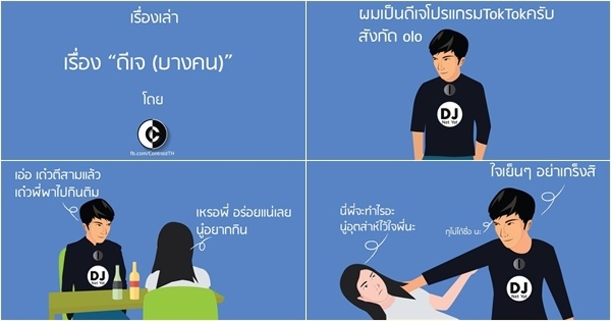 ล่าสุด (14 สิงหาคม 2558) ทางเพจ "Contrast" ก็ได้หยิบยกเหตุการณ์ที่เกิดขึ้นทั้งหมดมาถ่ายใหม่ในภาพชุด "เรื่องเล่า "ดีเจ (บางคน)"ซึ่งเป็นการสรุปเรื่องราวที่เกิดขึ้นทั้งหมด ตลอดจนทิ้งท้ายความคิดดี ๆ ให้เราได้ฉุกคิดถึงภัยจากโซเชียลที่กำลังเกิดขึ้นในปัจจุบัน ซึ่งเป็นหน้าที่ของเราทุกคน ตลอดจนผู้ปกครองที่จะช่วยกันป้องกันเหตุดังกล่าวไม่ให้เกิดขึ้นซ้ำในสังคม ดังชุดภาพต่อไปนี้
