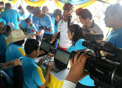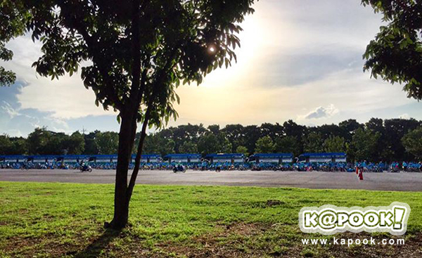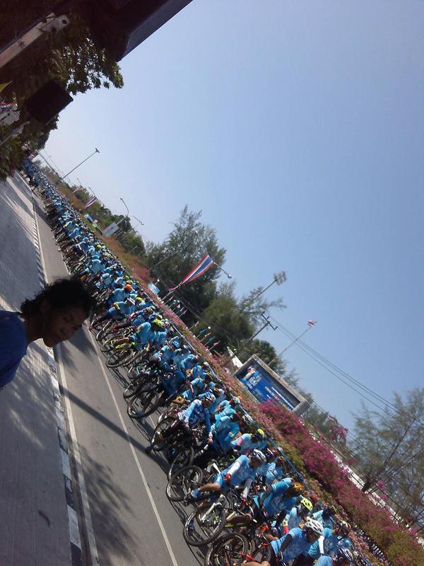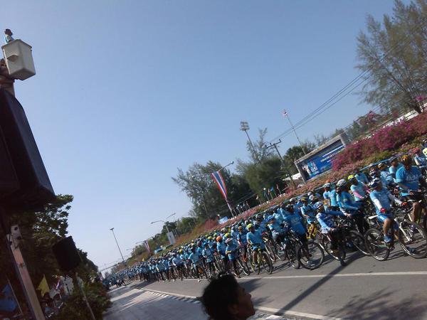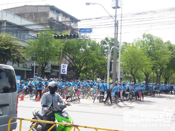 บรรยากาศการลงทะเบียน ณ จุดลงทะเบียนบริเวณแยกผ่านฟ้าลีลาศ, มหาวิทยาลัยเกษตรศาสตร์ และบริเวณลานพระบรมรูปทรงม้า เริ่มมีประชาชนผู้ร่วมกิจกรรมทยอยเดินทางเข้ามาลงทะเบียนกันแล้วด้วยสีหน้าแจ่มใส พร้อมกับจักรยานที่จะใช้เป็นยานพาหนะสำคัญในวันนี้ ขณะที่องค์กรผู้สนับสนุนกิจกรรมต่าง ๆ ก็ได้มีการนำอาหารและเครื่องดื่มมาจัดให้บริการตามจุดต่าง ๆ