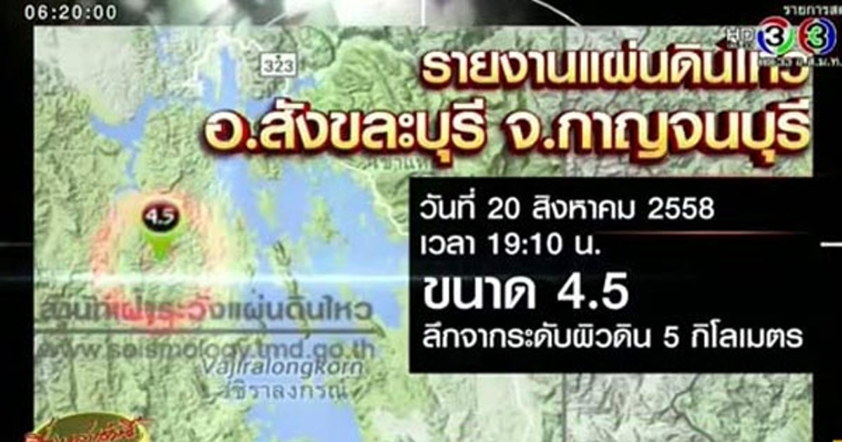 แผ่นดินไหวสังขละบุรี กาญจนบุรี 4.5 แมกนิจูด ความลึก 5 กม. เป็นแผ่นดินไหวขนาดกลาง รับรู้แรงสั่นสะเทือนใน 2 อำเภอ ก่อนเกิดอาฟเตอร์ช็อกตามมา