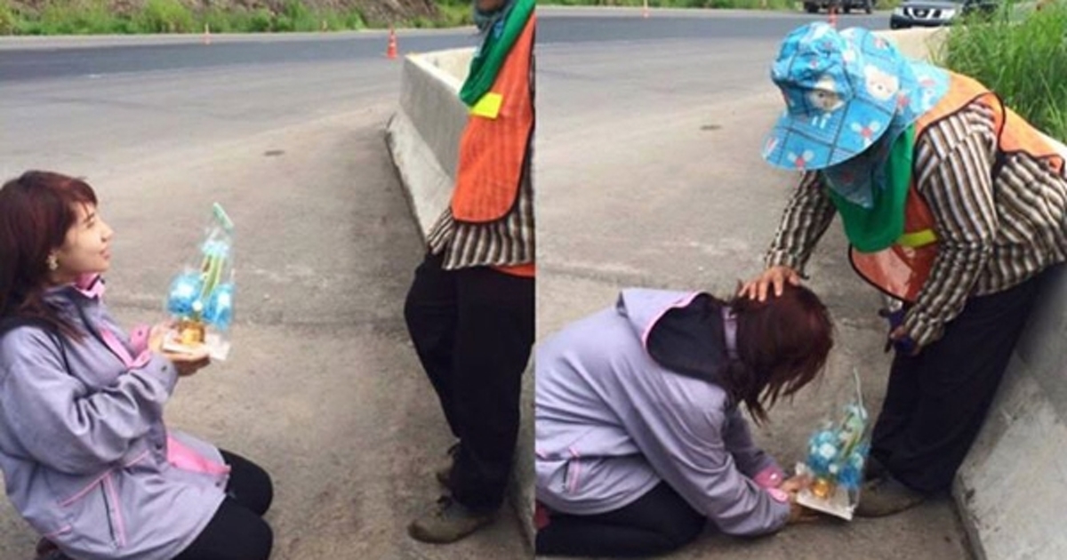 นับเป็นเรื่องราวที่น่าประทับใจที่ถูกแชร์ถล่มทลาย โดยเมื่อวันที่ 16 สิงหาคม 2558 ที่ผ่านมา เฟซบุ๊ก วัดม่วงชุม สิงห์บุรี ได้เผยแพร่ภาพของลูกสาวที่กำลังก้มกราบเท้าแม่ที่สวมชุดพนักงานกวาดถนน ด้านบรรดาชาวเน็ตต่างแห่เข้ามาชื่นชมในการกระทำขของเด็กสาวในภาพว่า เธอคือลูกที่น่ารักมาก แม้แม่จะทำงานกวาดขยะ เธอก็ไม่อายที่จะแสดงความรักต่อแม่เลย
