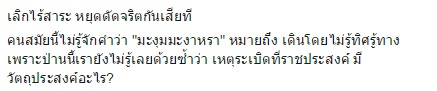 ส่วนกรณีที่ ผบ.ตร. ออกมาให้ความร่วมมือ และมีหลายกลุ่มออกมาวิเคราห์ว่าน่าจะเป็นเรื่องการเมือง ทั้งที่ความจริงสวนทาง หุ้นตกระเนระนาด ทัวร์ยกเลิก ต่างประเทศออกคำเตือนนักท่องเที่ยวที่จะมาประเทศไทย ศูนย์การค้าเงียบเหงา เลิกงานคนรีบกลับบ้าน สามทุ่มเงียบสงบทั้งกรุงเทพฯ เลิกไร้สาระ หยุดดัดจริตกันเสียที คนสมัยนี้ไม่รู้จักคำว่า "มะงุมมะงาหรา" หมายถึง เดินโดยไม่รู้ทิศรู้ทาง เพราะป่านนี้เรายังไม่รู้เลยด้วยซ้ำว่า เหตุระเบิดที่ราชประสงค์ มีวัตถุประสงค์อะไร