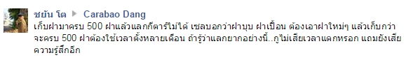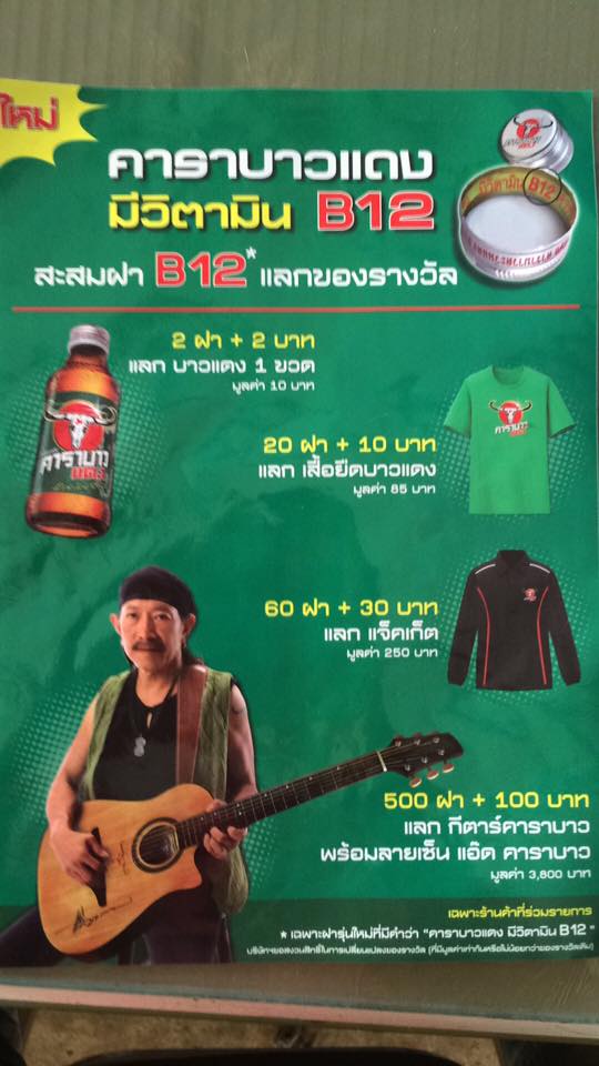วันที่ 23 สิงหาคม 2558 ในโลกออนไลน์ได้มีการแชร์ภาพจากผู้ใช้เฟซบุ๊ก ชยัน โต โพสต์ลงในเพจของเครื่องดื่มชูกำลัง "คาราบาวแดง" Carabao Dang เป็นรูปฝาเครื่องดื่มจำนวนหลายร้อยฝา พร้อมข้อความประกอบว่า เขาได้เก็บฝามาครบ 500 ฝาแล้ว แต่เมื่อนำไปแลกกีตาร์ ซึ่งเป็นแคมเปญของเครื่องดื่มดังกล่าว กลับแลกไม่ได้ เพราะเซลส์บอกว่า มีฝาบุบ ฝาเปื้อน ต้องเอาฝาใหม่ ๆ ซึ่งกว่าเขาจะเก็บครบ 500 ฝา ต้องใช้เวลาหลายเดือน หากรู้ว่าแลกยากขนาดนี้ เขาคงไม่เสียเวลาแต่แรก