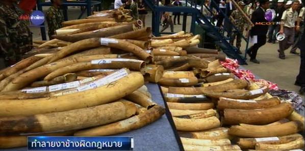 เมื่อวันที่ 26 สิงหาคม 2558 เจ้าหน้าที่กรมอุทยานแห่งชาติ สัตว์ป่า และพันธุ์พืช ได้ลำเลียงงาช้างที่ถูกนำมาทำเป็นเครื่องประดับกว่า 2 ตัน ลำเลียงเข้าเครื่องบดทำลายสูงกว่า 4 เมตร ยาว 14 เมตร จนเหลือเป็นชิ้นส่วนเล็ก ๆ ก่อนบรรจุใส่ถังขนาด 50 กิโลกรัม เตรียมนำไปเผาทำลายต่อ