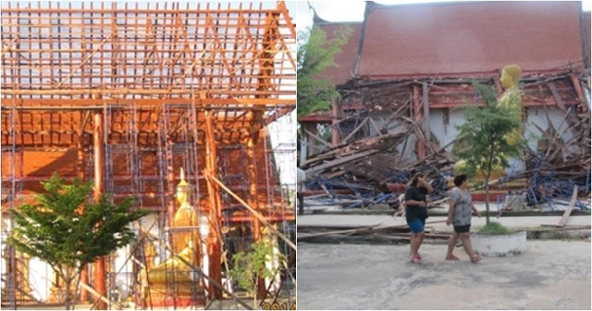ปทุมธานี-ลมพายุพัดวิหารหลวงพ่อโตวัดบ้านพร้าวใน อ.สามโคก ที่กำลังก่อสร้างพังทั้งหลัง