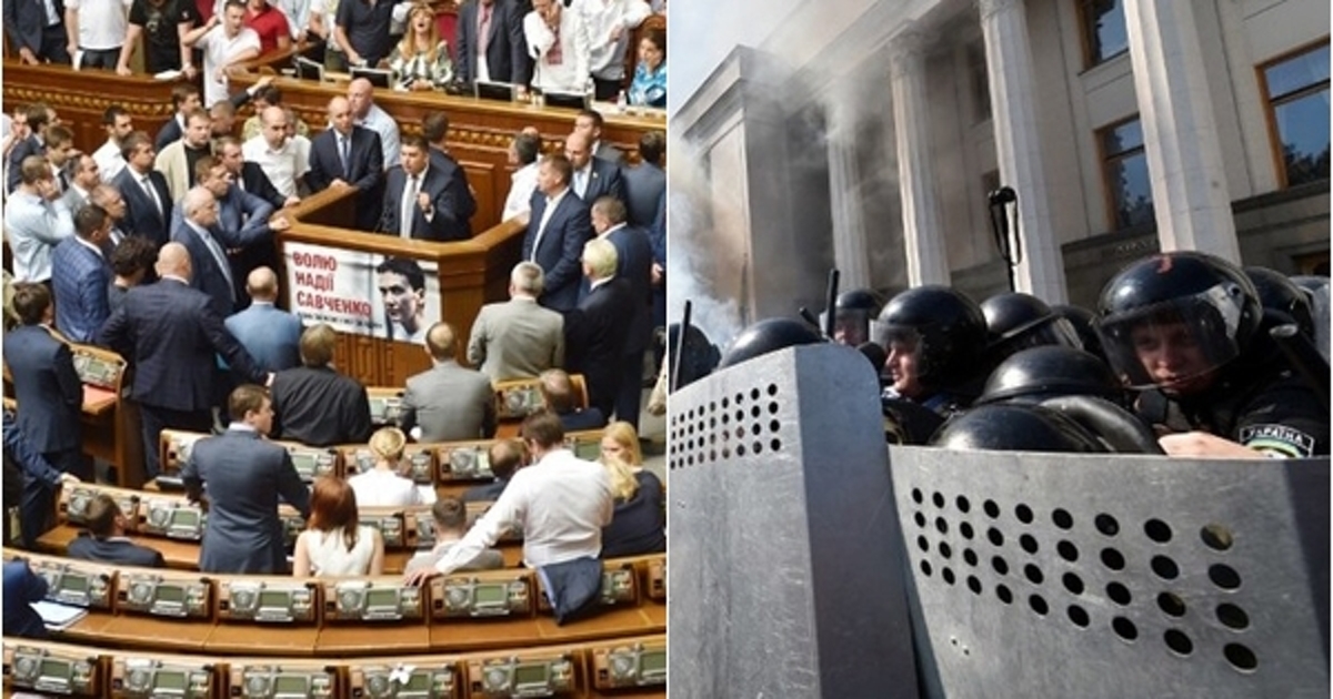 เมื่อวันที่ 31 สิงหาคม 2558 สำนักข่าวต่างประเทศ รายงานว่า เกิดการปะทะกันรุนแรงระหว่างกลุ่มผู้ประท้วงชาวยูเครนชาตินิยมหลายร้อยคน กับเจ้าหน้าที่ฝ่ายความมั่นคง บริเวณด้านนอกอาคารรัฐสภาเวคอฟนา ราดา ในกรุงเคียฟ ขณะที่ภายในรัฐสภา สมาชิกสภานิติบัญญัติแห่งชาติ กำลังมีการอภิปรายและลงมติอนุมัติขั้นต้น ให้แก้ไขกฎหมายรัฐธรรมนูญ เพื่อก่อตั้งเขตปกครองตนเองที่มีอำนาจมากขึ้นสำหรับกลุ่มกบฏแบ่งแยกดินแดนทางภาคตะวันออก ซึ่งฝักใฝ่รัสเซีย