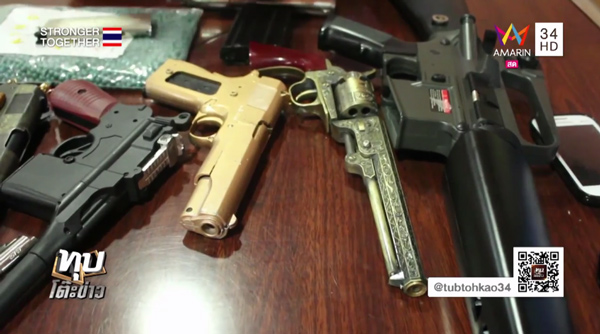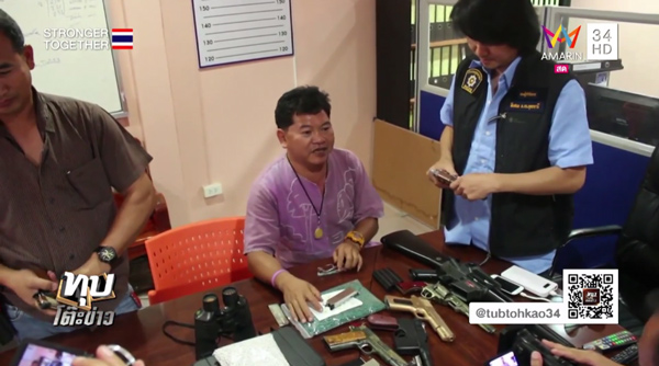 ต่อมา เจ้าหน้าที่ตำรวจได้ไปพบ นายสรายุทธ ซึ่งมีชื่อในฐานะผู้ส่งบนกล่องพัสดุไปรษณีย์ ยังบ้านพักใน อ.เอราวัณ จ.เลย พร้อมตรวจค้น โดยเจ้าหน้าที่ตำรวจค้นเจอปืนพกสั้นบีบีกัน 5 กระบอก ปืนไฟแช็ก 6 กระบอก ปืนยาวบีบีกัน (M 16) 1 กระบอก หน้ากากกันแก๊สพิษ 2 อัน กล้องส่งทางไกล 1 ตัว และกระสุนบีบีกัน 2 ถุง จึงควบคุมตัวมาสอบสวน
