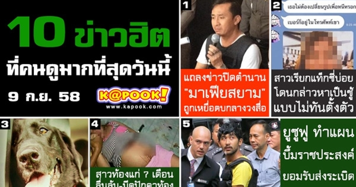 เรื่องที่คนส่วนใหญ่ให้ความสนใจมาเป็นอันดับแรกของวันนี้คือ ปิดตำนาน "มาเฟียสยาม" เหยื่อแค้นจัดตบกลางวงสื่อ และปิดท้ายกันที่ คดีฉาว นักเรียนอัดคลิปแฉ ครูใหญ่มีเซ็กส์กับครูในห้