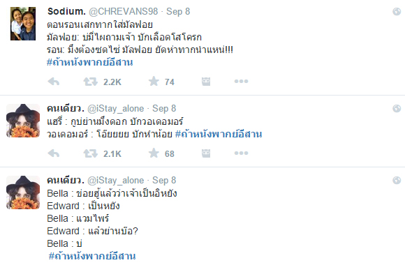 กำลังเป็นกระแสมาแรงที่เรียกเสียงเฮฮาทั่วโซเชียลในขณะนี้เลยก็ว่าได้ สำหรับแท็ก #ถ้าหนังพากย์อีสาน ที่ชวนชาวเน็ตมาร่วมแปลงบทพูดจากหนังหรือซีรีส์สัญชาติต่าง ๆ ออกมาเป็นภาษาอีสานบ้านเฮากันดู โดยผลงานที่ส่งเข้าประกวดความฮานั้นมีตั้งแต่ซูเปอร์ฮีโร่จากอเวนเจอร์ เหล่าพ่อมด-แม่มดจากแฮรี่ พอตเตอร์ แม้แต่โลกดิสนีย์ก็ยังมา แถมสารพัดซีรีส์เกาหลีแบบจัดเต็ม