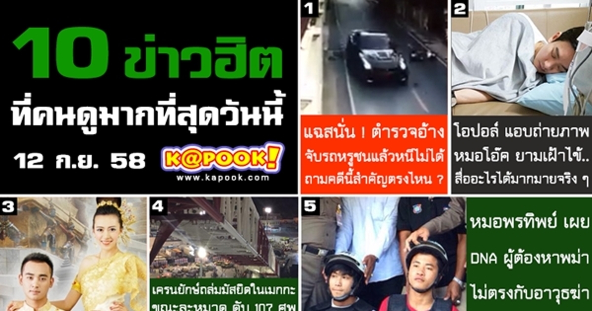 ข่าวฮิตประจำวันนี้ อันดับ 1 เป็นเรื่อง แฉสนั่น ตำรวจอ้างจับรถหรูชนแล้วหนีไม่ได้ ถามคดีนี้สำคัญตรงไหน ? ตามมาด้วยอันดับ 2 โอปอล์ แอบถ่ายภาพ หมอโอ๊ค ยามเฝ้าไข้.. สื่ออะไรได้มากมายจริง ๆ และข่าวอื่น ๆ อีกมากมาย