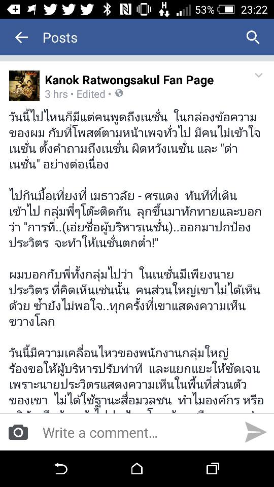 วันนี้ไปไหนก็มีแต่คนพูดถึงเนชั่น ในกล่องข้อความของผม กับที่โพสต์ตามหน้าเพจทั่วไป มีคนไม่เข้าใจเนชั่น ตั้งคำถามถึงเนชั่น ผิดหวังเนชั่น และ "ด่าเนชั่น" อย่างต่อเนื่อง