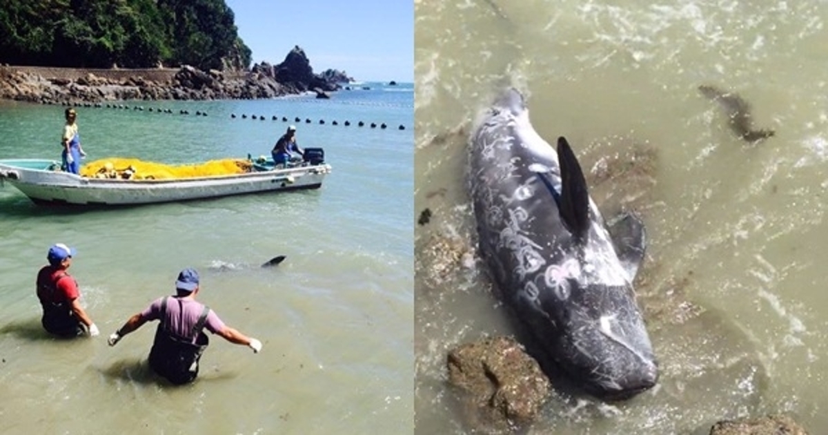 เว็บไซต์เดลี่เมล เผยคลิปสุดสะเทือนใจคนดู เมื่อโลมาบาดเจ็บไปทั้งตัวว่ายน้ำมาริมฝั่ง เพื่อพยายามดันตัวเองให้ขึ้นไปเกยตื้นบนโขดหิน หลังจากได้รับบาดเจ็บจากการถูกทำร้ายบริเวณไทจิโคฟ หรือที่เรียกว่า อ่าวสีเลือดของประเทศญี่ปุ่น โดยบริเวณนี้จะมีโลมาหลายพันตัวถูกล่าและฆ่านำไปทำเป็นอาหารทุก ๆ ปี