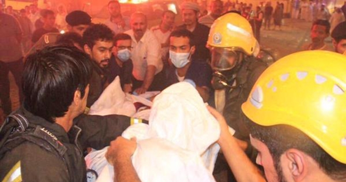 สำนักเอพี หน่วยงานป้องกันอุบัติภัยพลเรือนของซาอุดีอาระเบีย ต้องอพยพผู้คนมากกว่า 1,000 ชีวิตและพบผู้ได้รับบาดเจ็บ 2 ราย หลังเกิดเหตุเพลิงลุกไหม้ออกมาจากห้องพักห้องหนึ่งของโรงแรมในย่านอาซิซิยา เมืองเมกกะ เมื่อวันที่ 17 กันยายน 2558