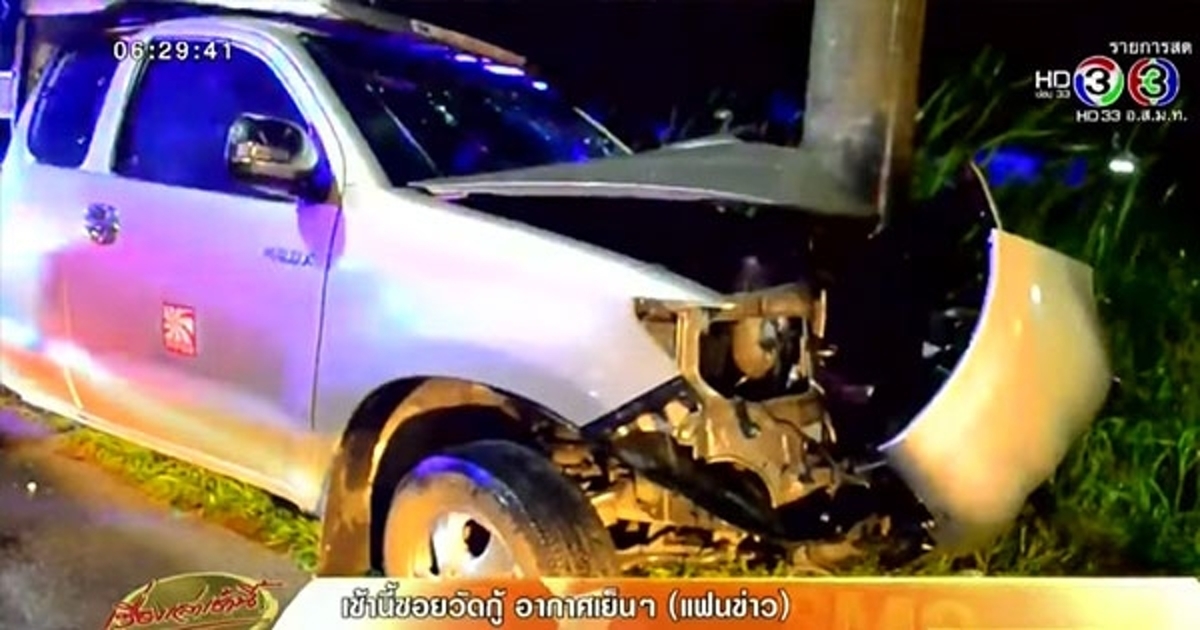 รถรับ-ส่งพนักงานพุ่งชนเสาขนาดใหญ่ข้างทางที่ปทุมธานี หลังถูกรถกระบะเสยท้ายจนเสียหลัก เป็นเหตุให้มีผู้เสียชีวิต 2 ราย และบาดเจ็บ 7 ราย