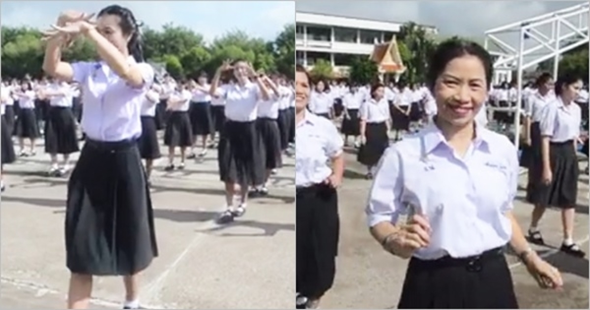 อย่างไรก็ตาม สิ่งที่เด็ดที่สุดในกิจกรรมครั้งนี้คงไม่ได้มีเพียงท่ารำสวย ๆ อย่างพร้อมเพรียงของเด็กสาวเหล่านั้นนี้เท่านั้น เพราะเมื่อลองสังเกตเห็นใบหน้าของนักเรียนที่รำอยู่หัวแถวชัด ๆ แล้ว ก็ให้รู้สึกสะดุดใจว่าสาว ๆ ที่นำรำอยู่นี้ ดูแล้วไม่น่าจะเป็นเด็กชั้นมัธยมปลายแน่ ๆ ก่อนความจริงจะปรากฏในที่สุดว่าที่แท้แล้วงานนี้มีเหล่าคุณครูมาร่วมกิจกรรม สวมชุดนักเรียนรำเป็นหัวแถวให้ด้วยนั่นเอง !!