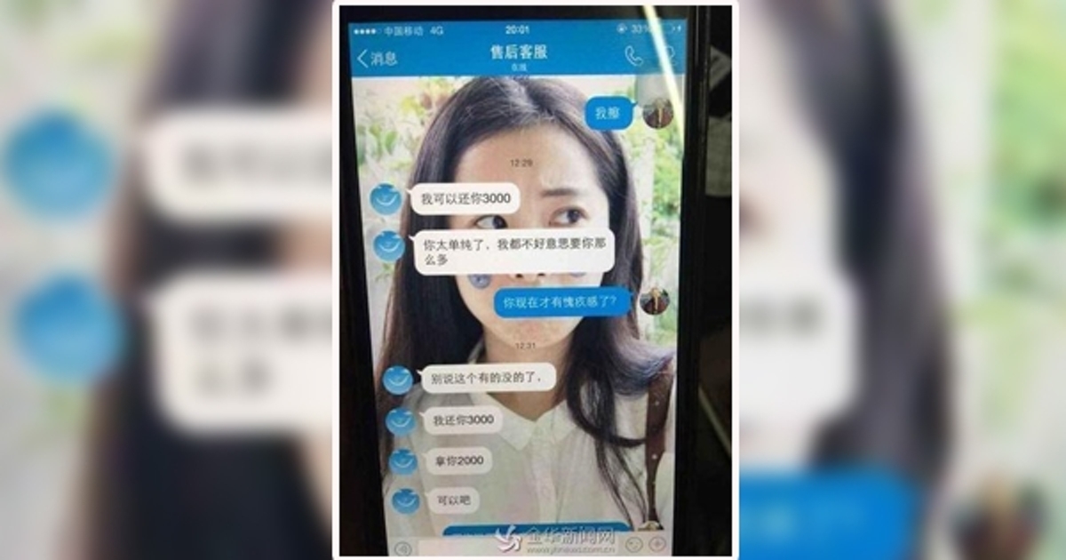 แต่แล้วในวันรุ่งขึ้น เธอก็ได้รับข้อความจากบุคคลนิรนามติดต่อเข้ามา บอกว่าจะยอมคืนเงินให้ 2,500 หยวน (12,500 บาท) เพราะว่าเธอช่างน่ารักและไร้เดียงสาเหลือเกิน