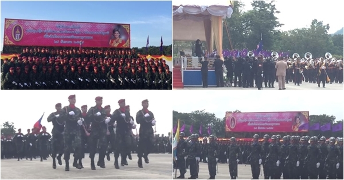 โดยกำลังพลสวนสนามได้ร่วมขับร้องเพลง "พระเทพแห่งไทย" และเหล่าทหารร่วมเปล่งเสียงทรงพระเจริญไปอย่างกึกก้อง